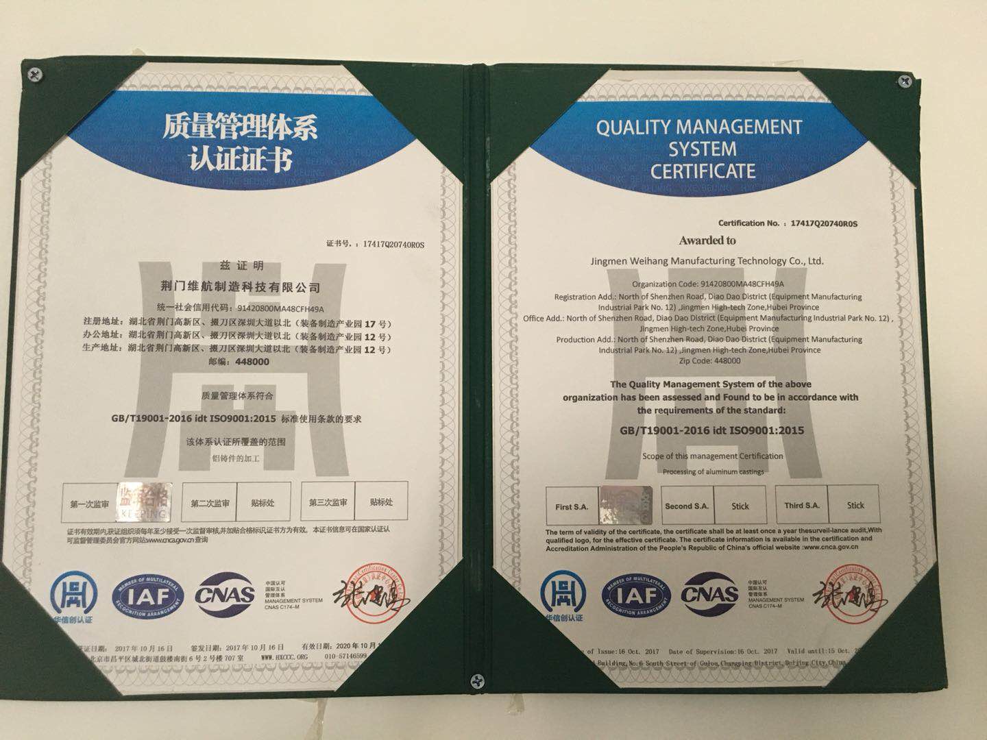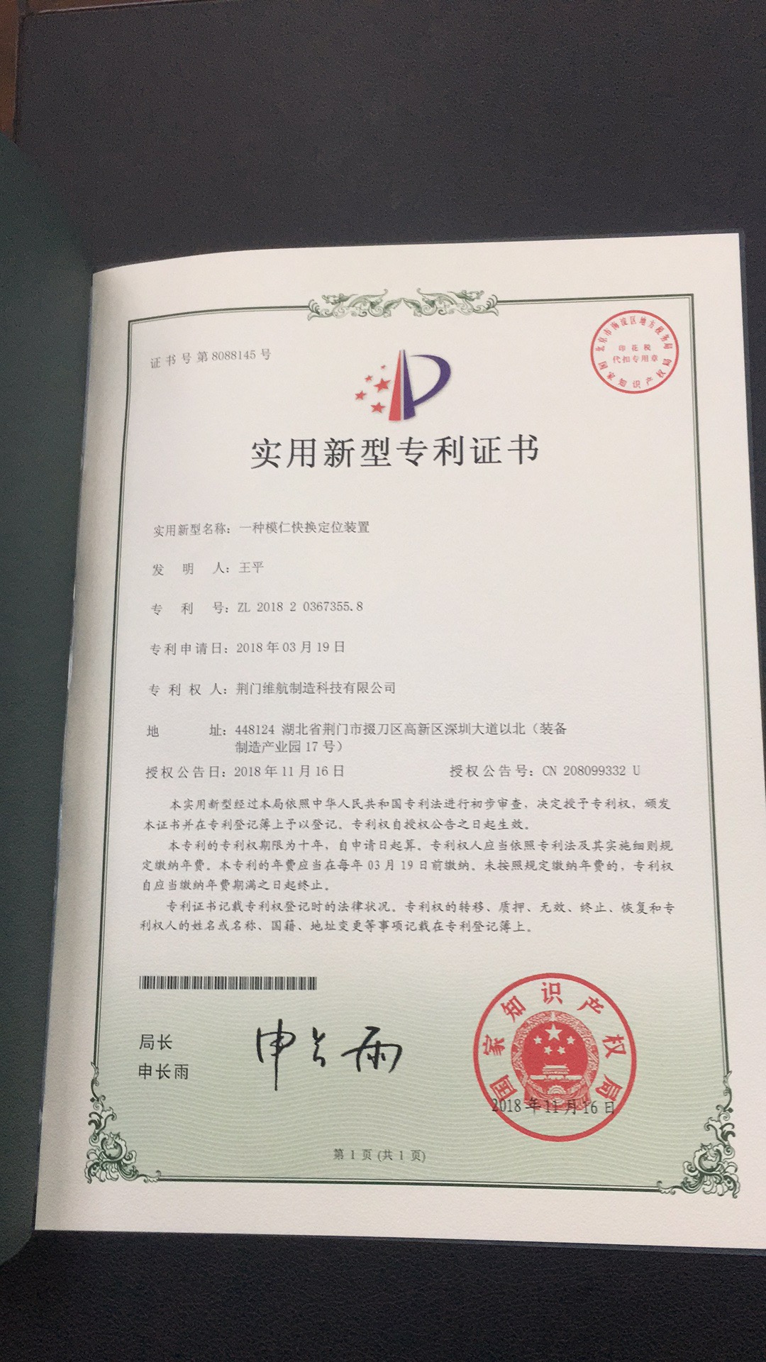公司通過(guò)質(zhì)量管理體系認(rèn)證證書(shū)、實(shí)用新型專(zhuān)利證書(shū)等